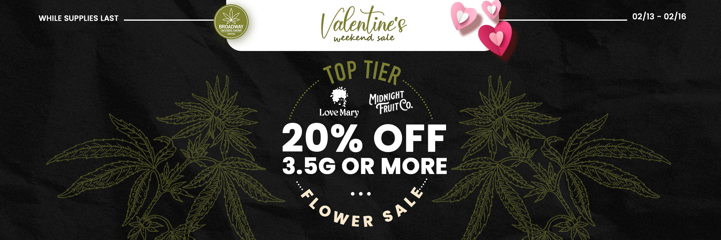 Broadway customers receive 1 reward point for every dollar spent at our locations and receive a $1 discount for every 25 points accrued. Rewards points can be used on cannabis and non-cannabis items!